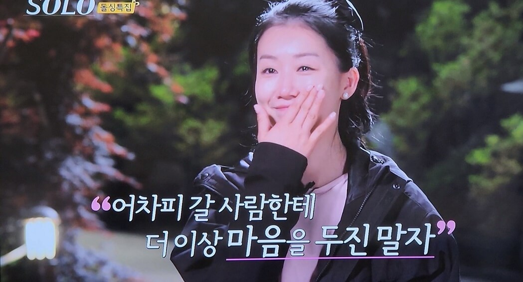 큰소리로 현숙을 부른다."솔로나라 처음 출연 결정할 때 고민 많이 했었는데 첫날 현숙이 보고 나오길 잘했다고 생각했어~ 짧은 기간이지만 나에게 좋은 추억 만들어줘서 고맙고 우리 밖에서 더 알아보자~ 고마워!!"