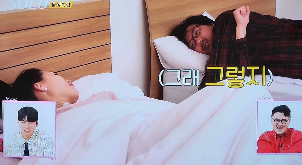 영숙 옆에서 꼬물거리는 상철 꼬물거리며 상철은 영숙에게 자기 좀 쳐다보란다. 퉁명스럽게 대답하면서도 상철이 해달라는 대로 다 응해주는 영숙~