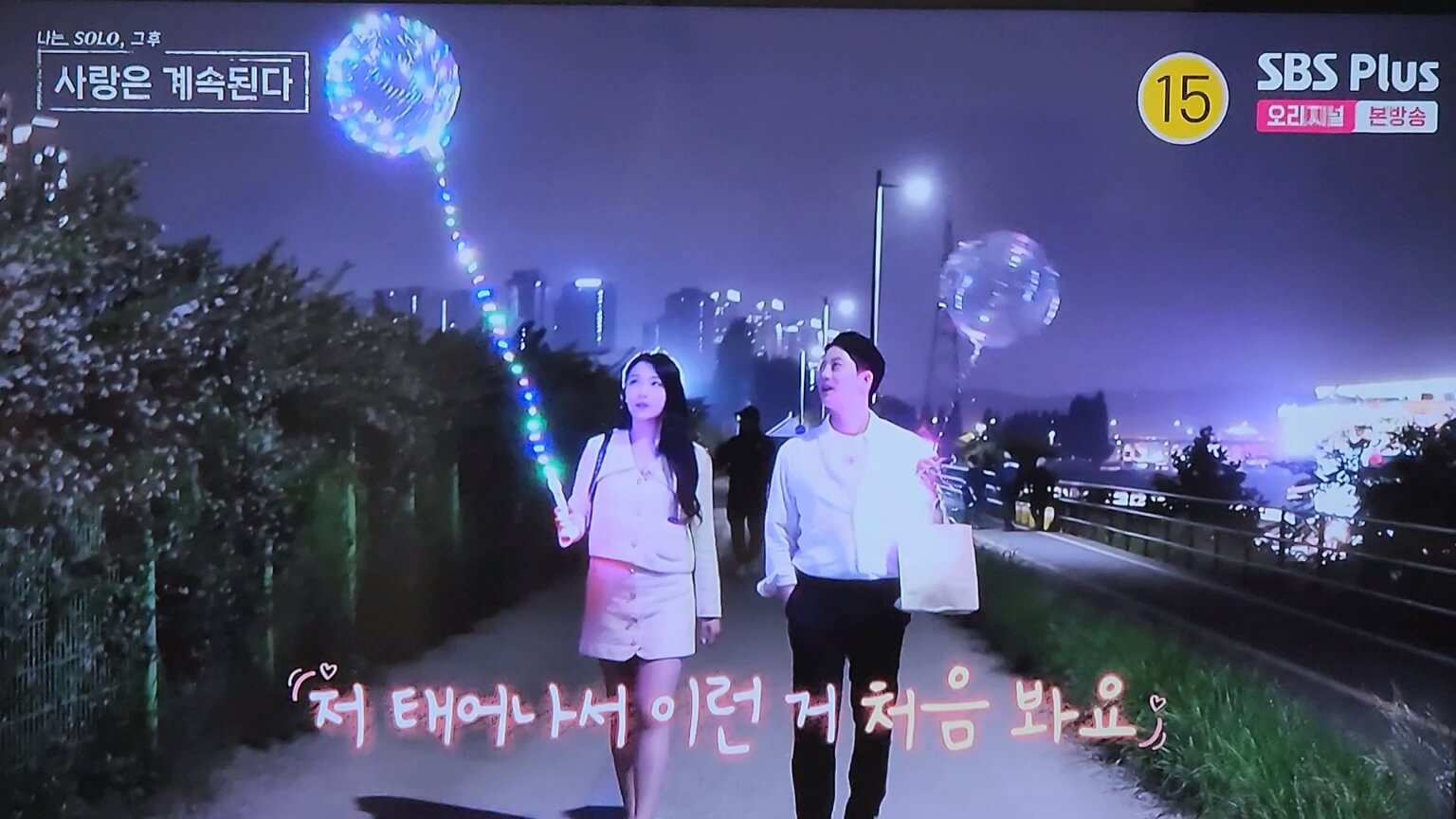 종수는 옥순을 위해 (아님 방송을 위해서였을까!! 히히~) 제작진들 마저 따돌리고 한강 공원에 있는 모르는 분 큰 아가?! 의 풍선을 3배의 가격을 주고 사 오는데... 옥순과 종수는 그 풍선을 들고 어린아이처럼 한강공원의 산책을 즐겼다.